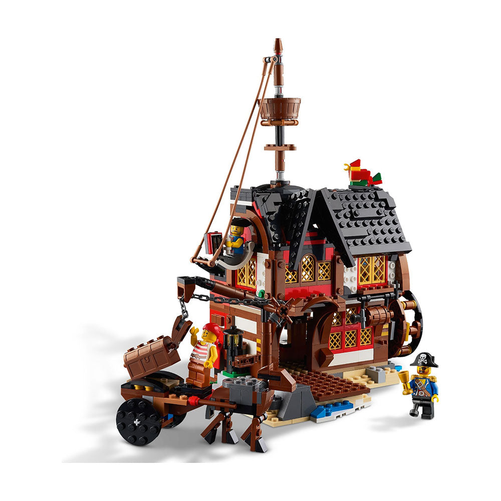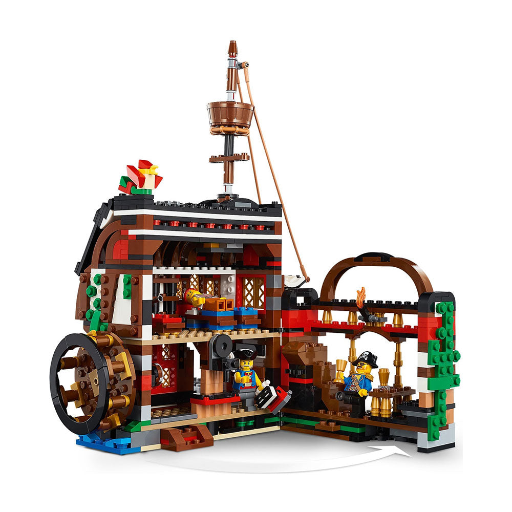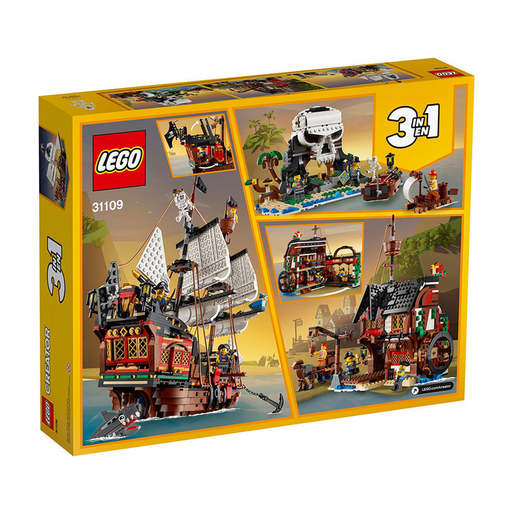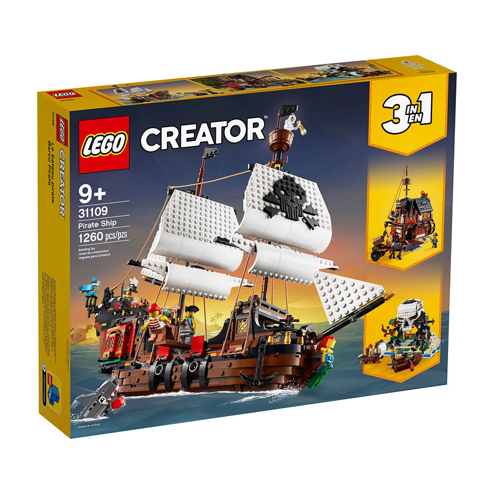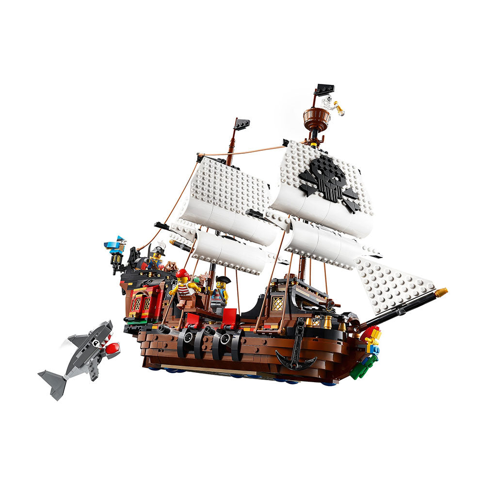 Swashbuckling adventures for pirate fans of all ages. Just one build in this 3in1 set features a pirate ship with moving sails, cannons and a cabin with opening roof and sides, 3 minifigures, buildable figures including a shark and a parrot, and many cool accessories. That is just 1 of the 3 options this build offers, build them all and let us know which one was your favourite.