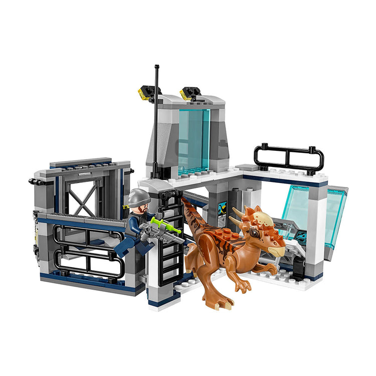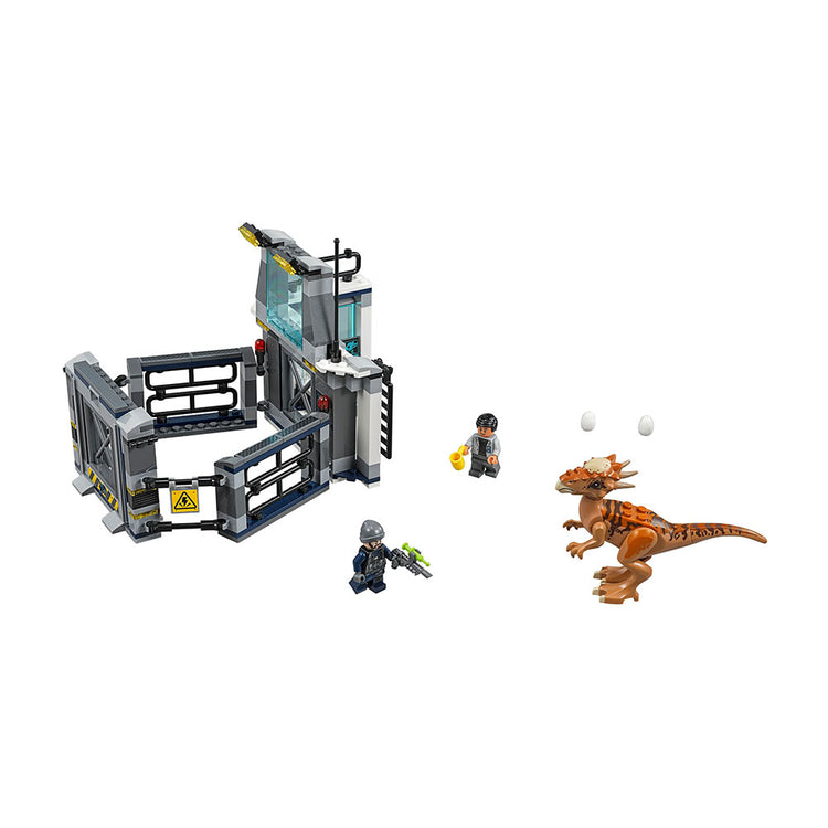 Break out the Stygimoloch dinosaur with this action-packed set inspired by Jurassic World. Featuring a laboratory with observation deck and a tilting workbench with breaking window function, connected to a dinosaur enclosure pen with 2 floodlights and a lifting gate, plus 2 minifigures and a Stygimoloch figure.