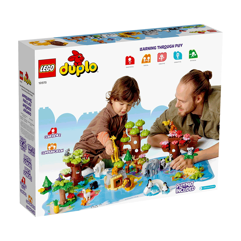 Duplo Wild Animals of the World is an adventure-packed set perfect for kids aged 2 and up. Animals set in their natural habitats offer an interactive learning experience. From pandas in Asia to penguins in Antarctica, kids can explore animals across all 7 continents. With sound bricks for animal noises and a foldable world map playmat, it’s a fantastic set for young explorers.