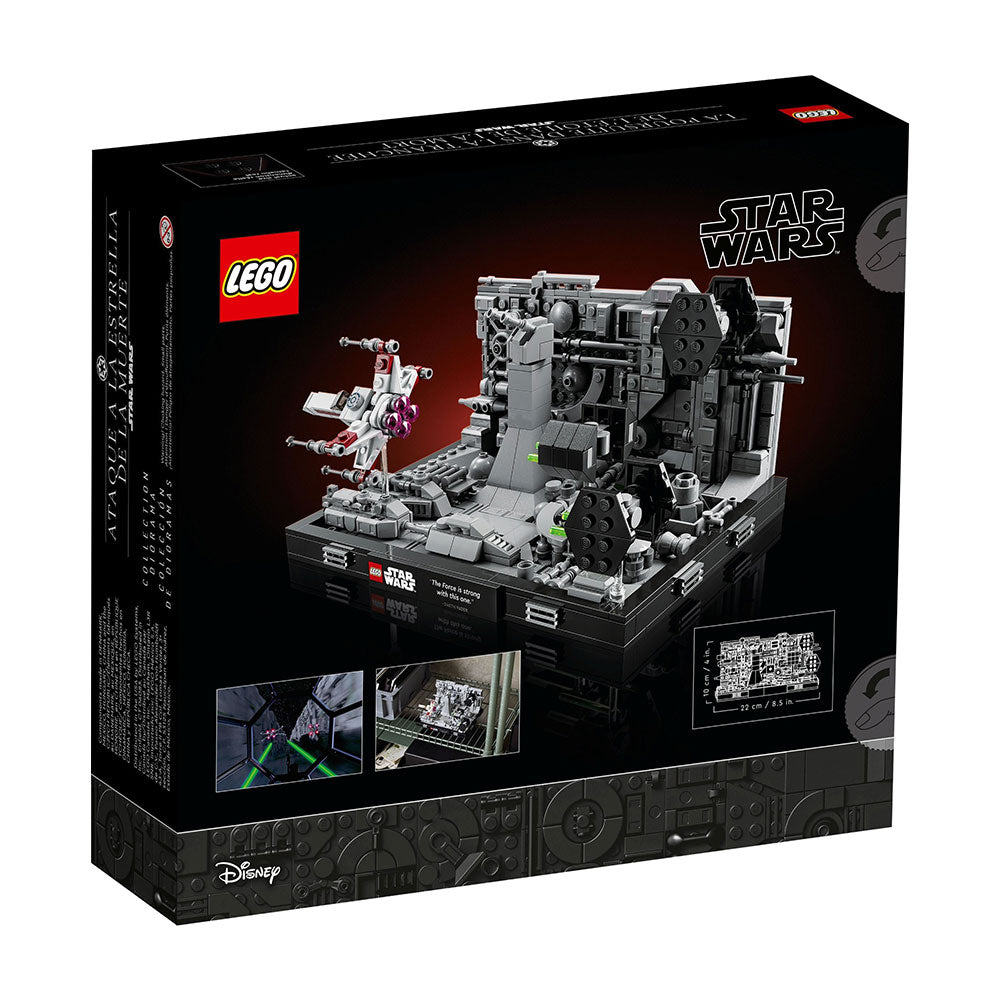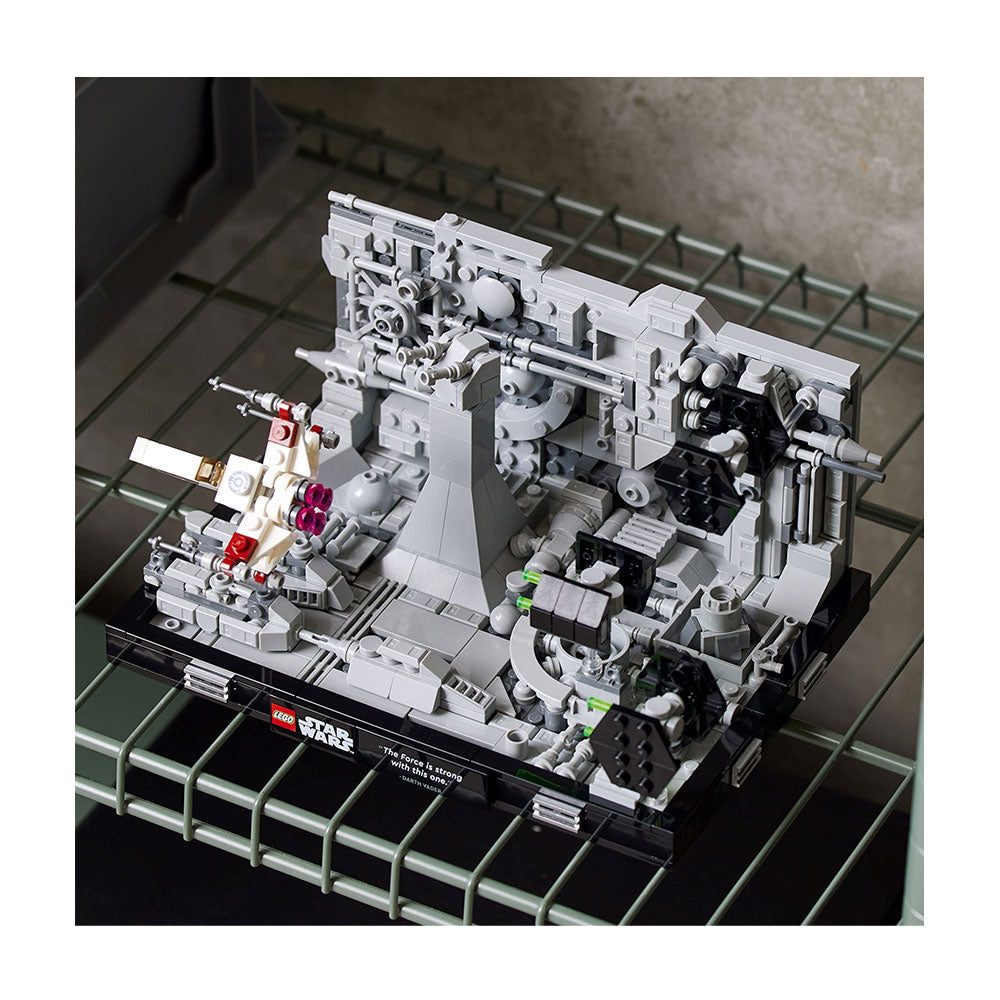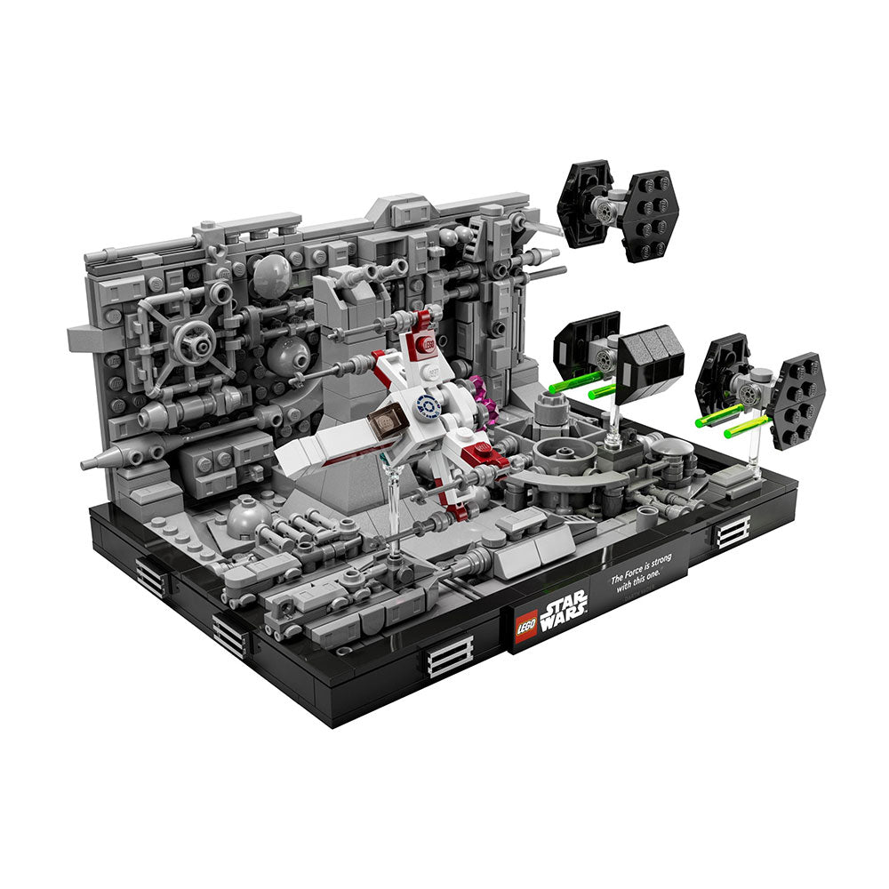 Channel Jedi-like focus and recreate a memorable moment from Star Wars: A New Hope with this Death Star Trench Run Diorama building set. Capture a snapshot of that gripping scene in intricate detail, from the surface of the Death Star to the brick-built models of Darth Vader’s TIE Advanced fighter and 2 TIE fighters in hot pursuit of Luke Skywalker’s X-wing. Attach the plaque bearing Darth Vader’s words (“The Force is strong with this one”) to complete a nostalgia-inspiring centrepiece.